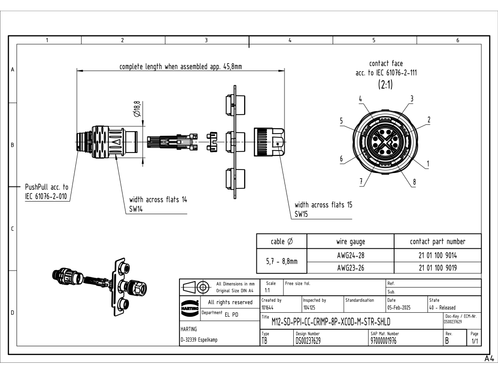 97000001976 | M12-SD-PPI-CC-CRIMP-8P-XCOD-M-STR-SHLD