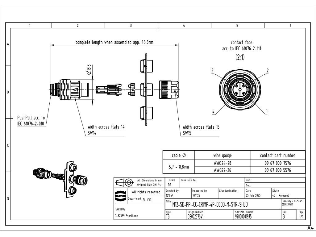 97000001975 | M12-SD-PPI-CC-CRIMP-4P-DCOD-M-STR-SHLD
